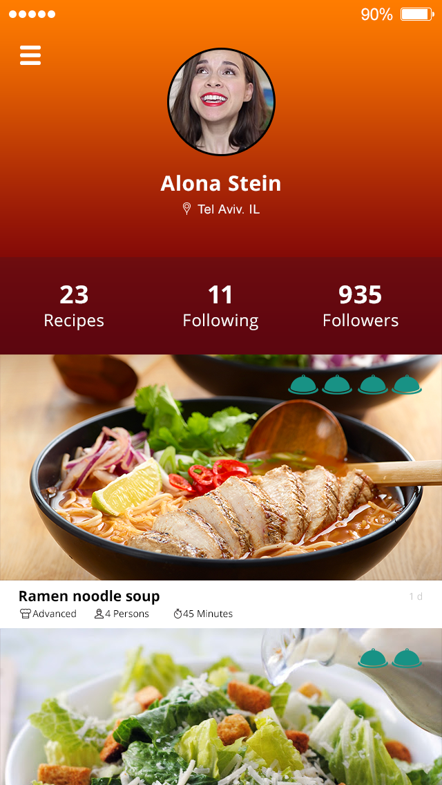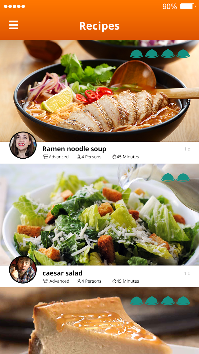 Wire frames and design for a recipe - app. Sharing your favourite recipes with others